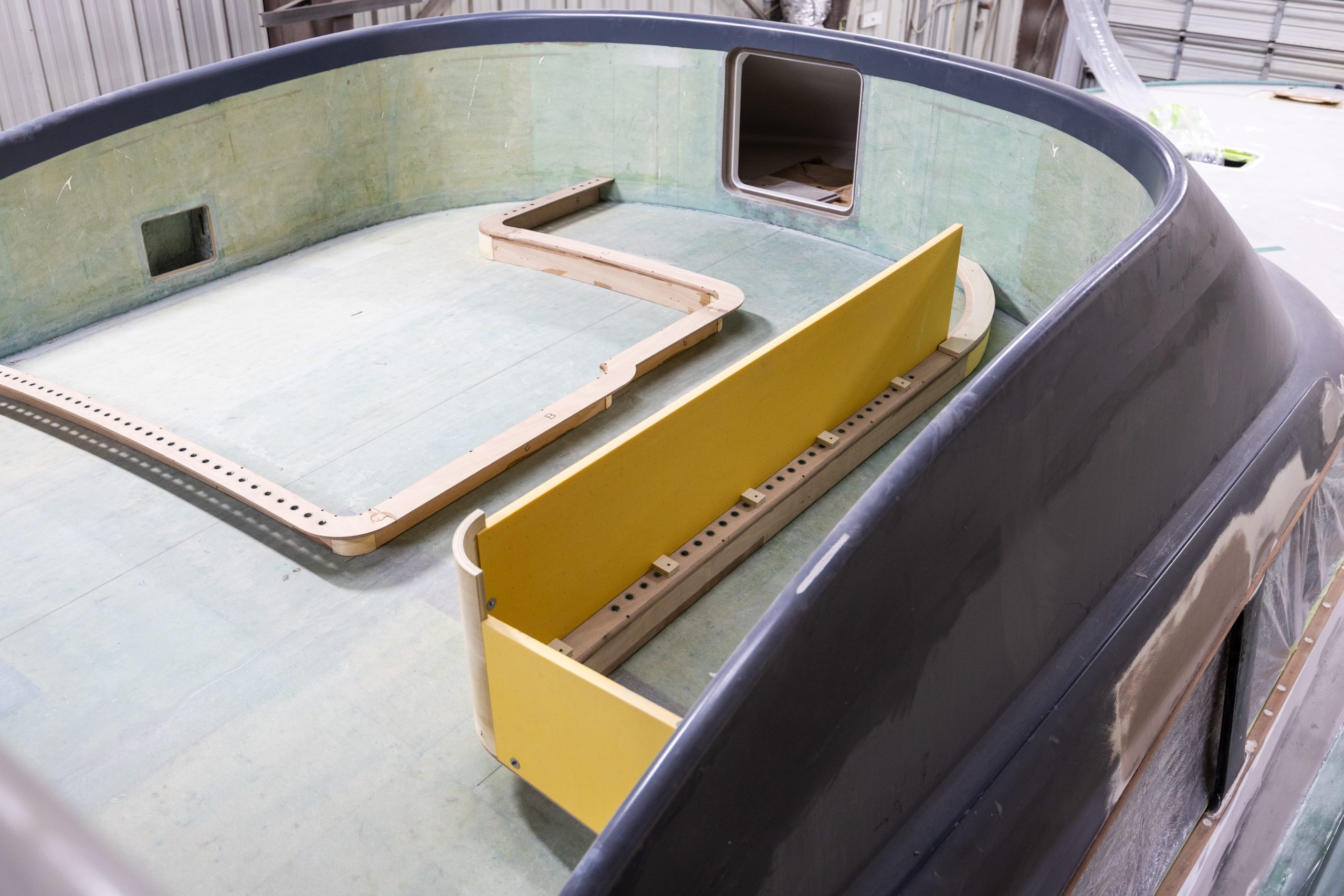 Bridge Layout: Port peninsula console with forward & starboard bench seats